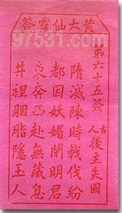 黄大仙抽签(第65签)