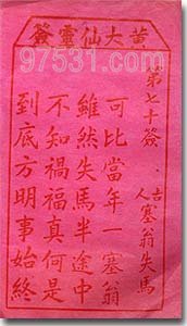 黄大仙抽签(第70签)