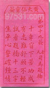 黄大仙抽签(第49签)